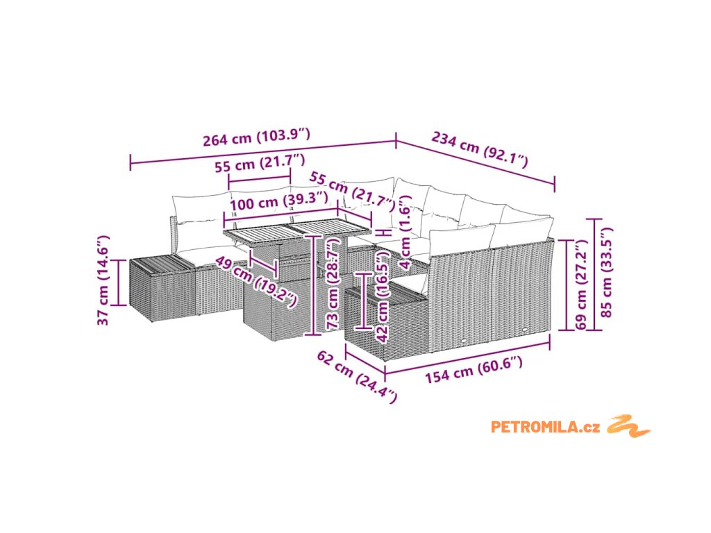 - Modulární konfigurace: Se sadou modulárních komponentů jako rohová, centrální a boční sedadla s úložnými možnostmi, set nabízí bezkonkurenční flexibilitu, aby se přizpůsobil tvým měnícím se potřebám sezení, zvyšující jeho použitelnost.