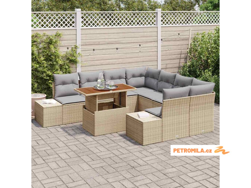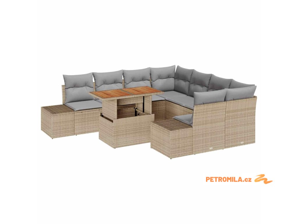 Zahradní jídelní souprava s polštářem 9 pcs Beige a šedá