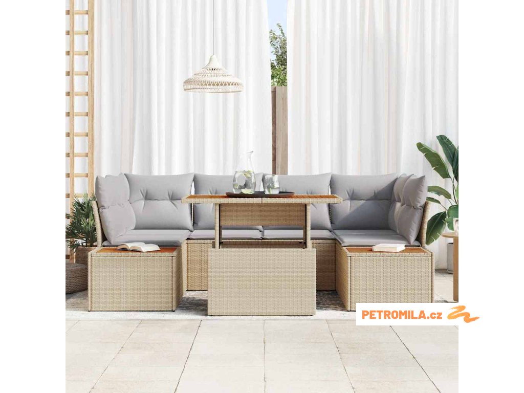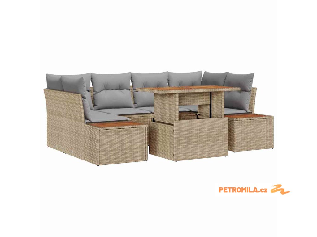 Zahradní jídelní souprava s polštářem 9 pcs Beige a šedá