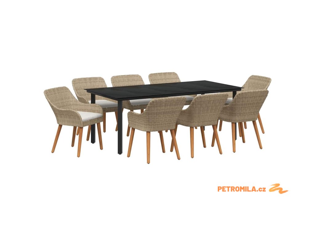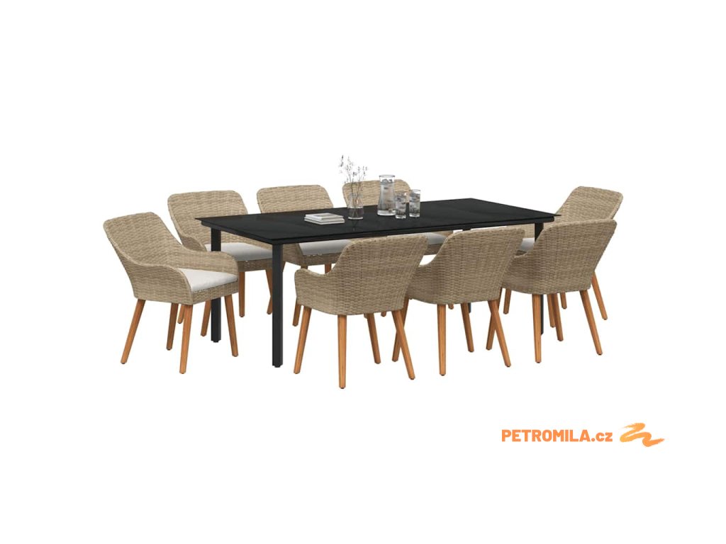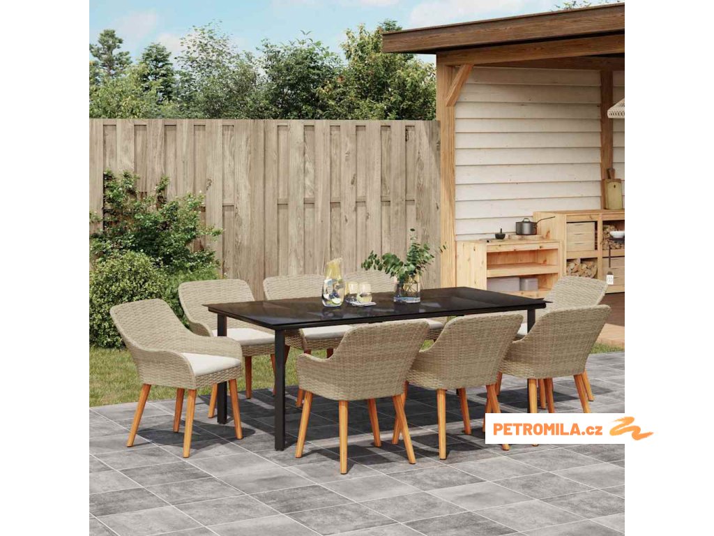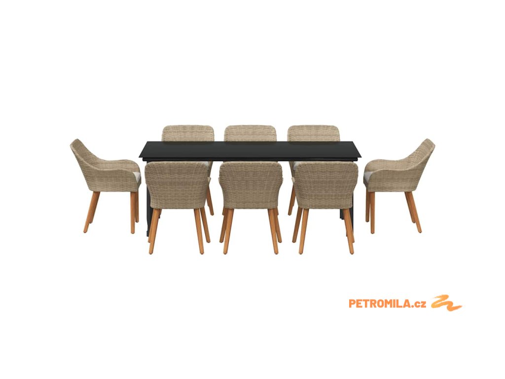 Zahradní jídelní souprava s polštářem 9 pcs Béžová polyratan
