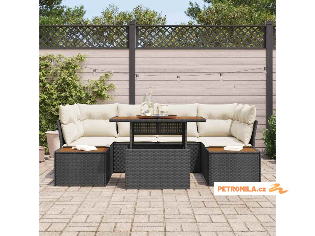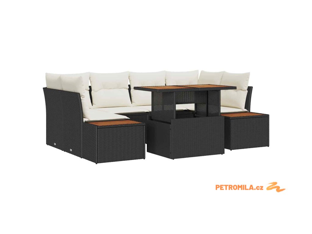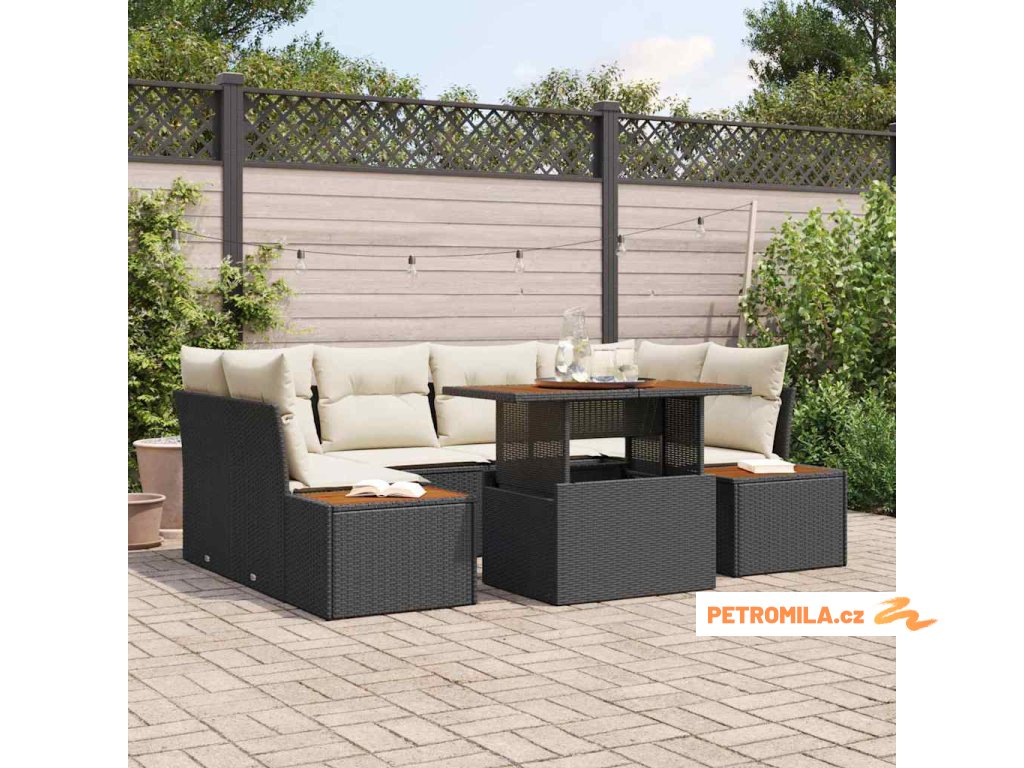 Zahradní jídelní souprava s polštářem 9 pcs Černá a béžová