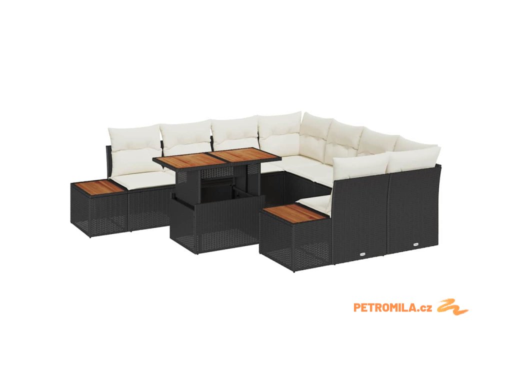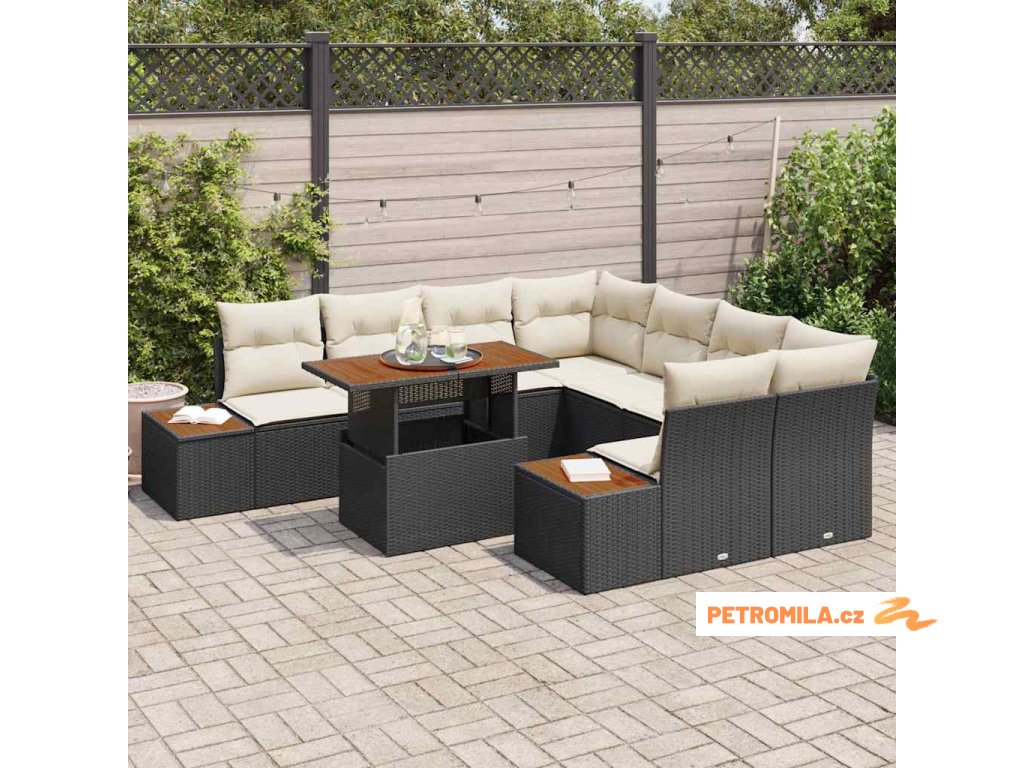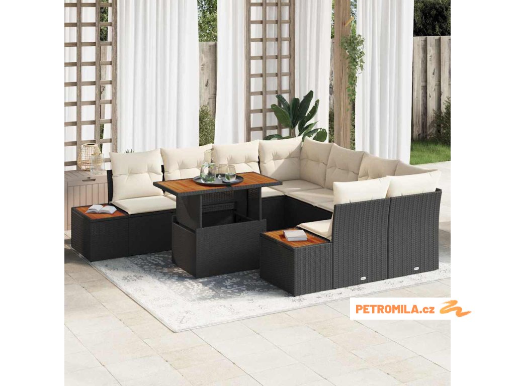 Zahradní jídelní souprava s polštářem 9 pcs Černá a béžová