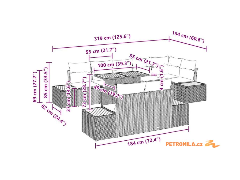 - Údržba a péče: K ochraně tohoto elegantního setu prostě použij pokrývku, když se nepoužívá, a vyhýbej se tvrdým čisticím prostředkům. Základní údržba zahrnuje prachování jemným hadříkem a zajištění odnímatelných částí, jako jsou polštáře, pro trvalou krásu a funkčnost venku.
