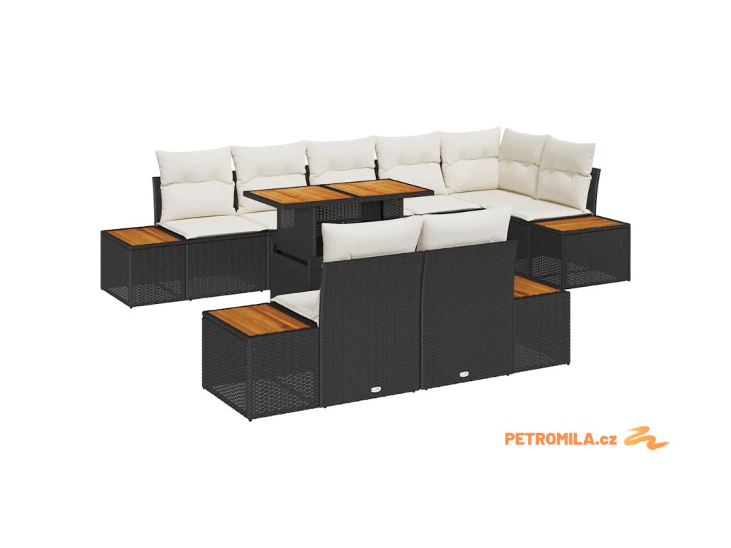 Zahradní jídelní souprava s polštářem 9 pcs Černá a béžová