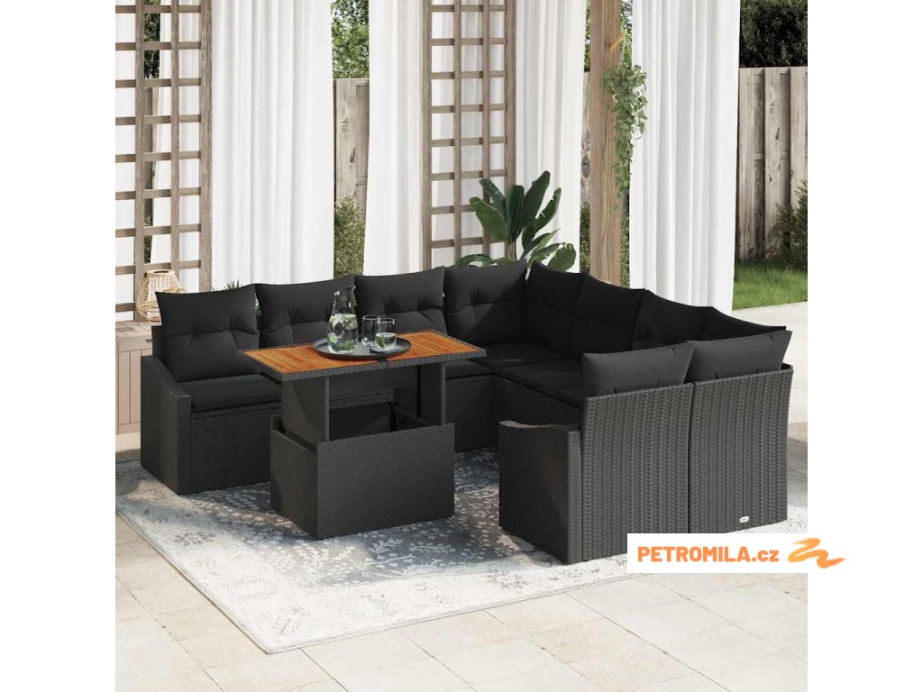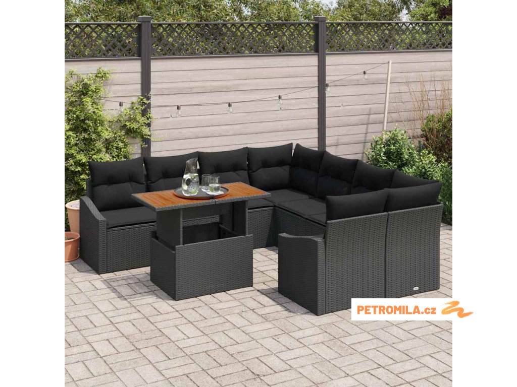 Zahradní jídelní souprava s polštářem 9 pcs Černá a hnědá