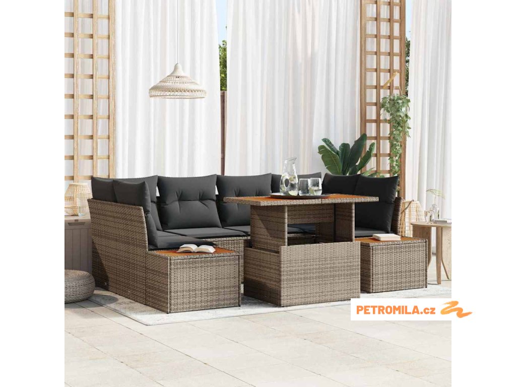 Zahradní jídelní souprava s polštářem 9 pcs Šedá a hnědá
