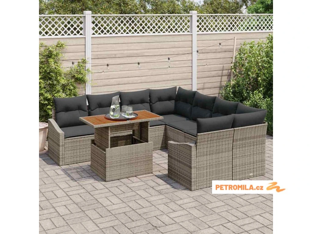 Zahradní jídelní souprava s polštářem 9 pcs Šedá a hnědá