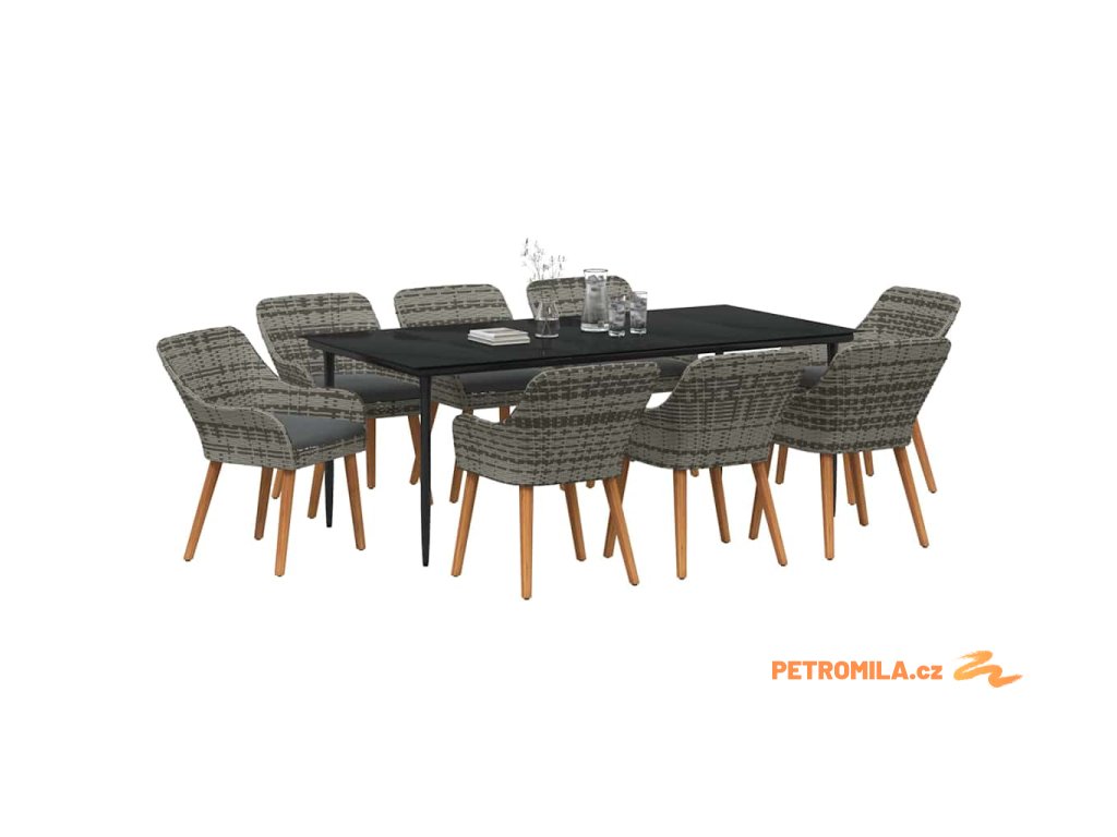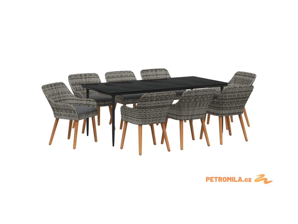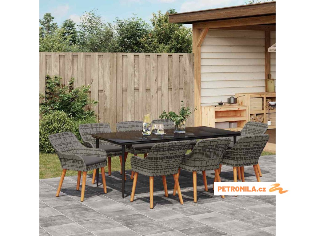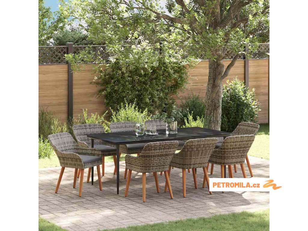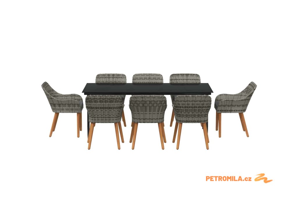 Zahradní jídelní souprava s polštářem 9 pcs Šedá polyratan