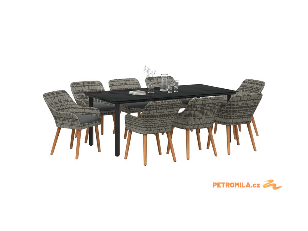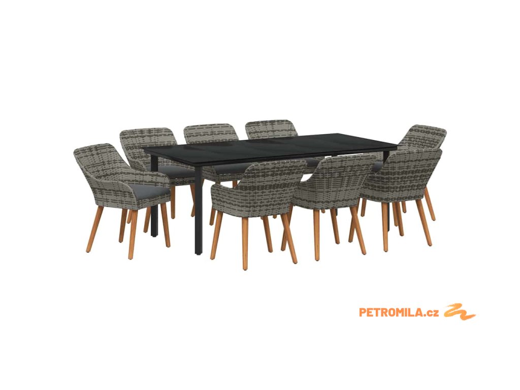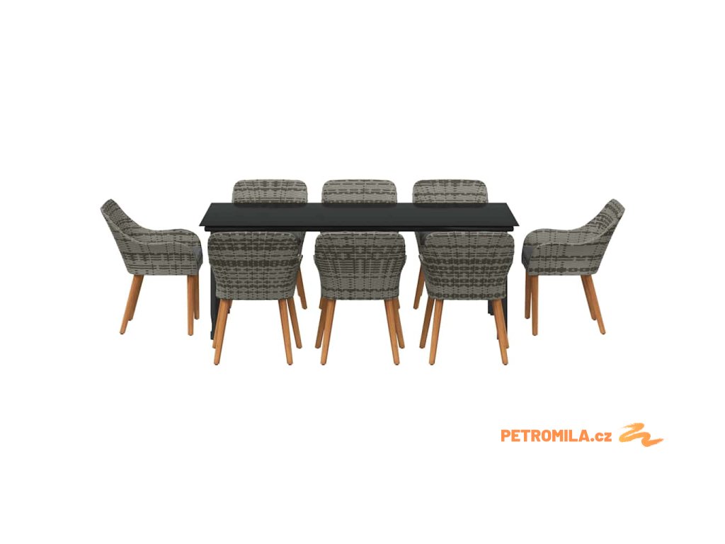 Zahradní jídelní souprava s polštářem 9 pcs Šedá polyratan