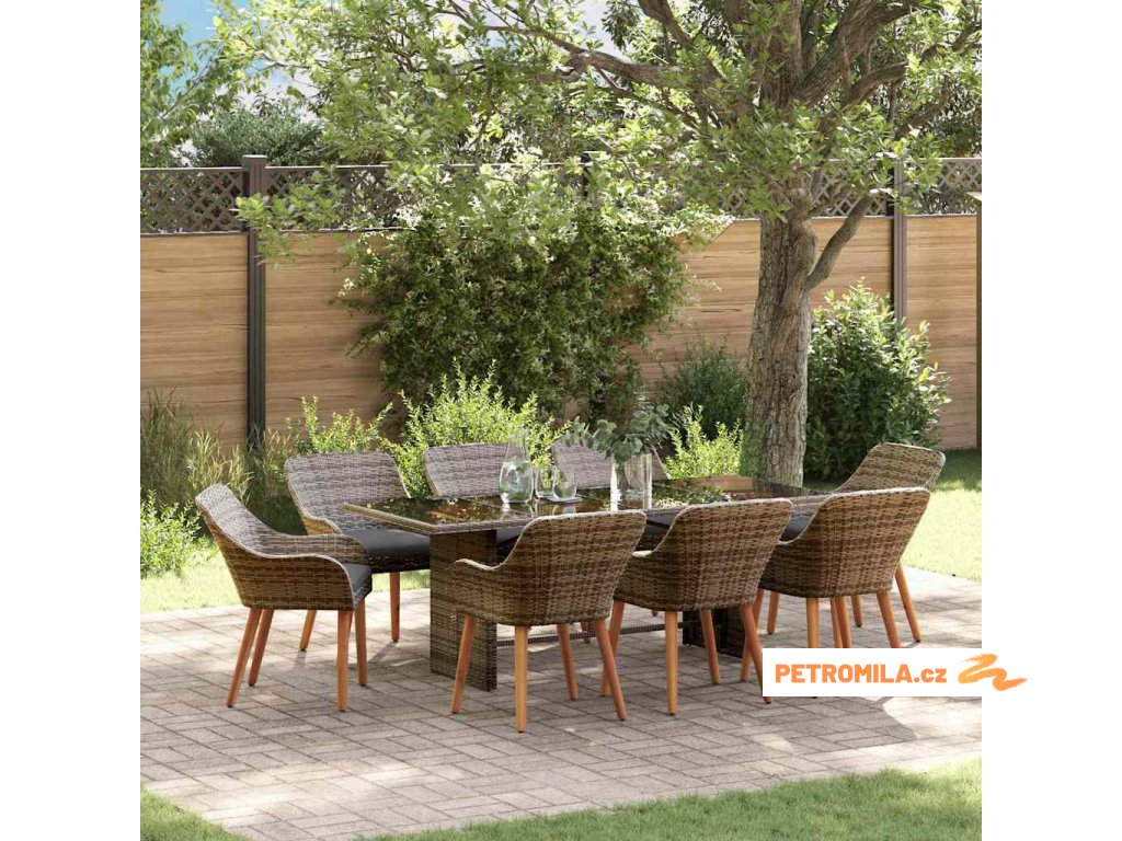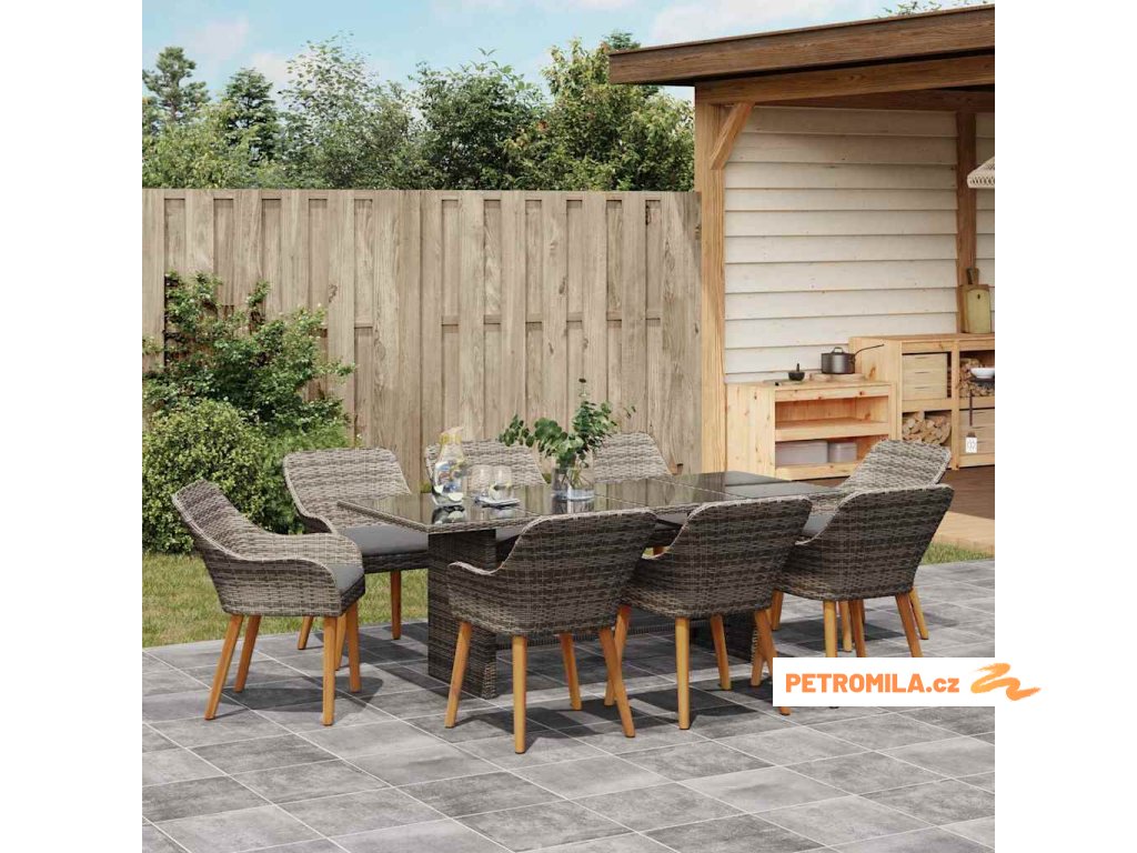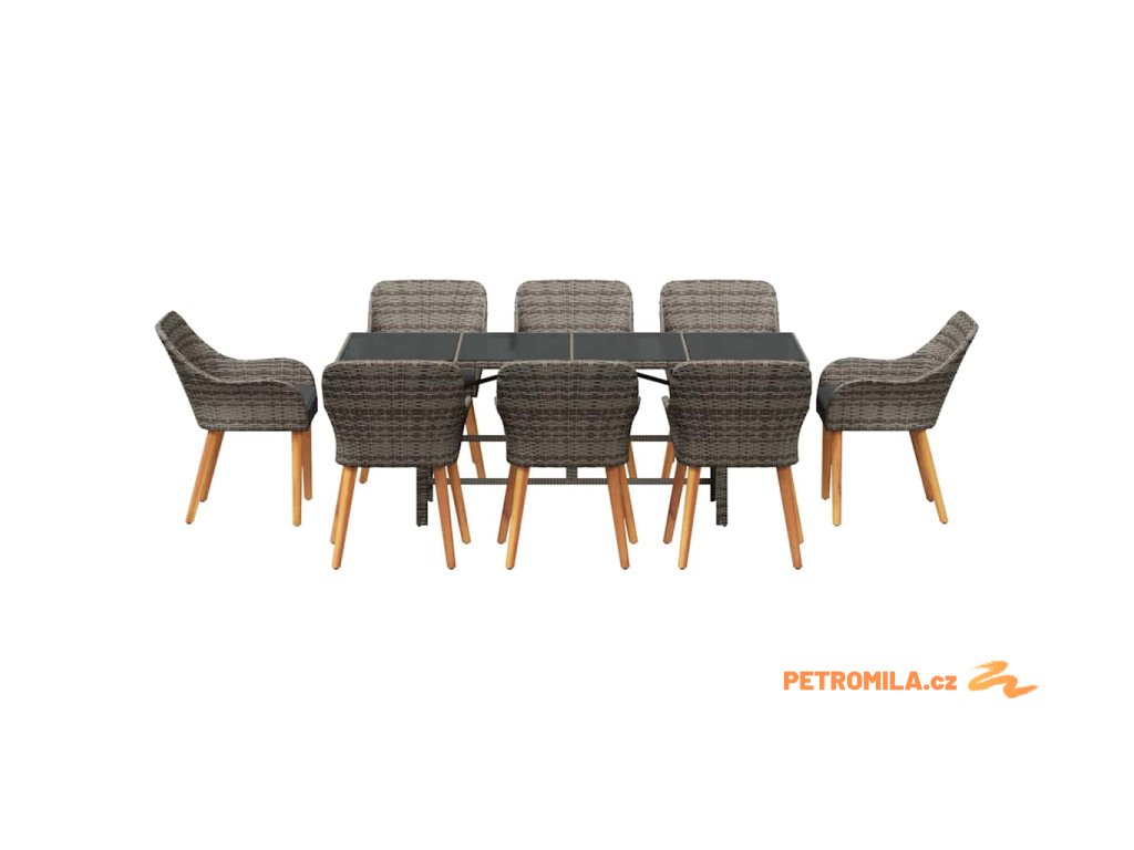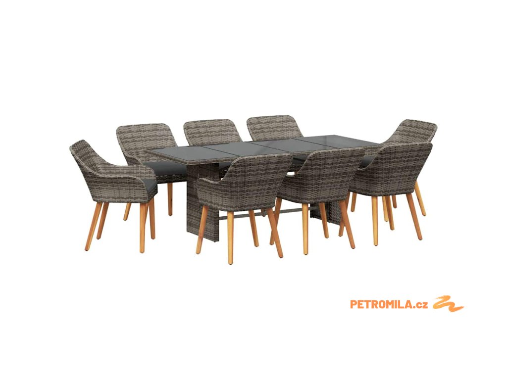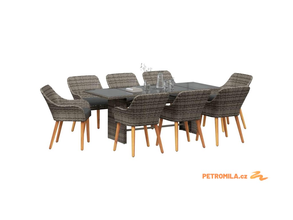 Zahradní jídelní souprava s polštářem 9 pcs Šedá polyratan