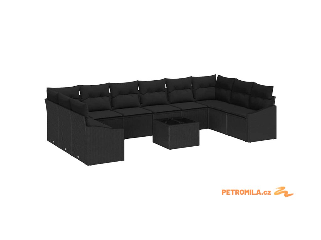 Zahradní jídelní souprava s polštářem s úložištěm 11 pcs Černá