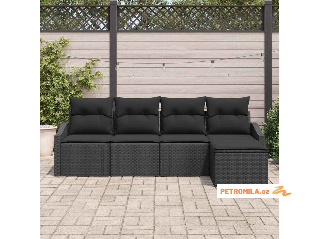 Zahradní jídelní souprava s polštářem s úložištěm 5 pcs Černá