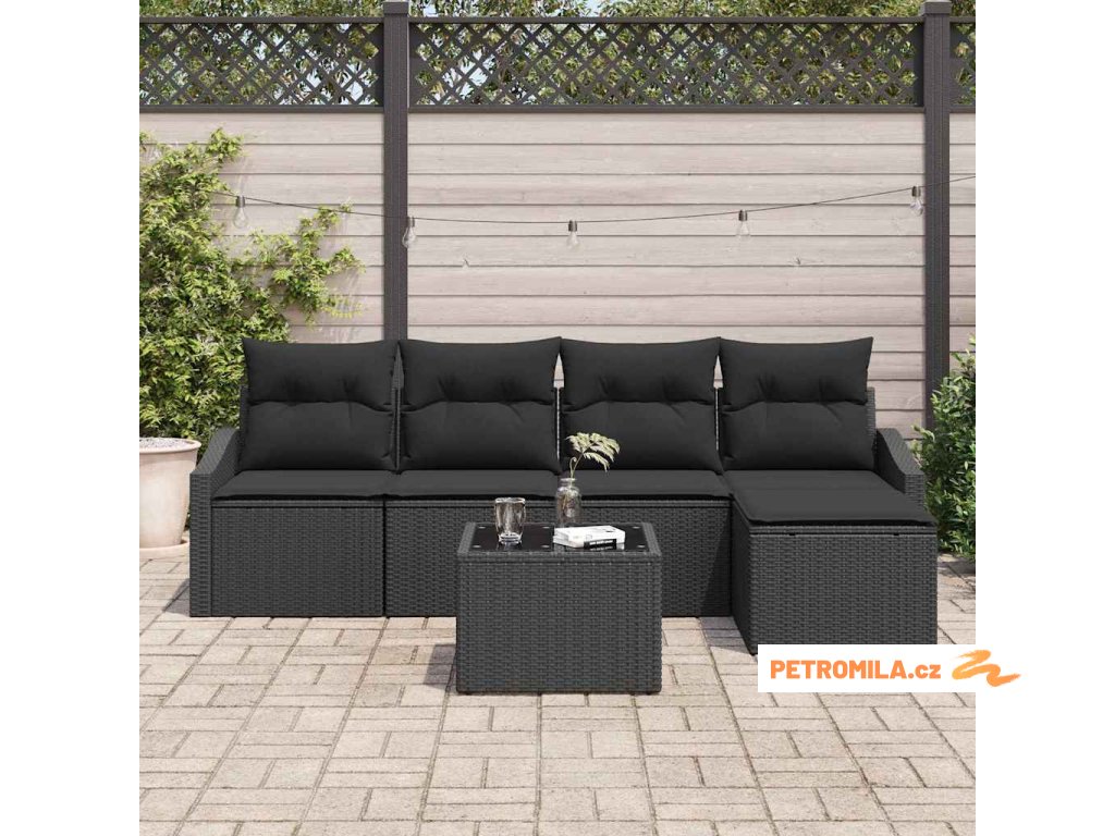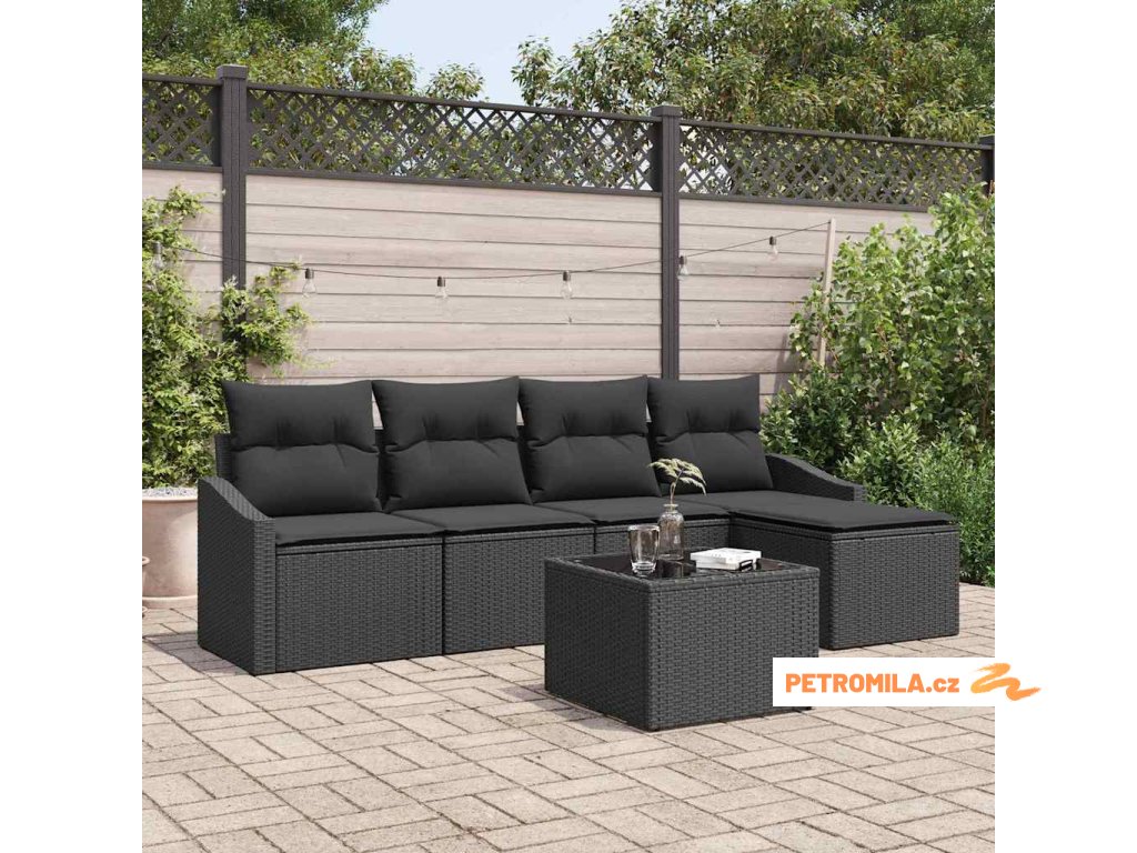 Zahradní jídelní souprava s polštářem s úložištěm 6 pcs Černá