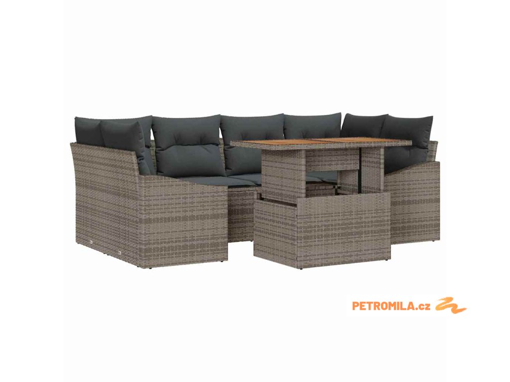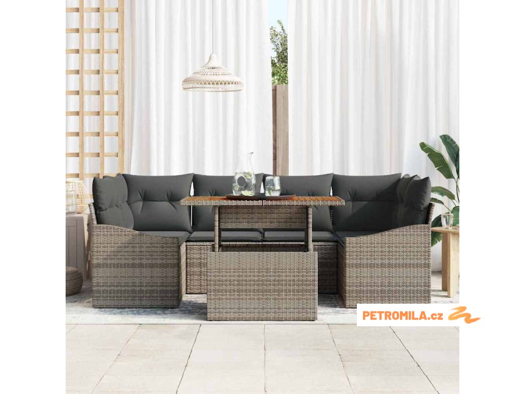 - Praktické komponenty: Tento set zahrnuje dvě pohovky s opěrkami, dvě rohová sedadla, dvě středová sedadla a jeden zahradní stůl, každý s integrovanými úložnými funkcemi. Navržené pro venkovní pohodlí, kusy nábytku poskytují prostorné oddíly pro udržení nezbytností organizovaných a skrytých, čímž udržují uklizený a funkční venkovní prostor.