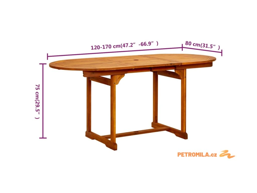 Zahradní jídelní stůl (120–170) x 80 x 75 cm masivní akácie