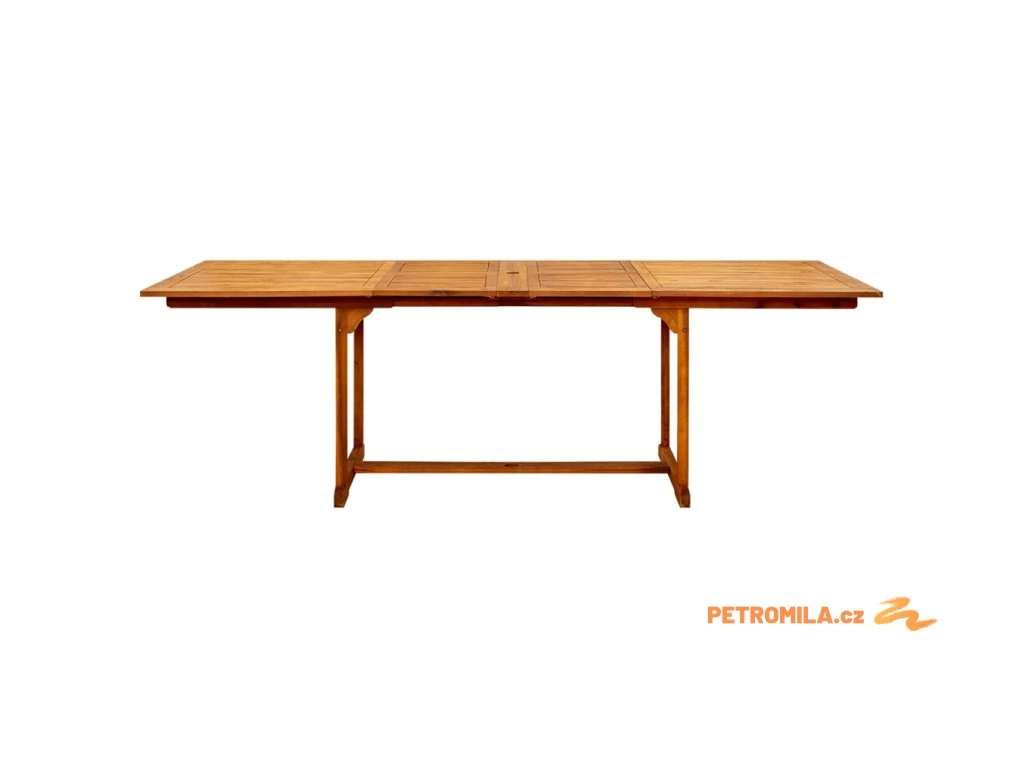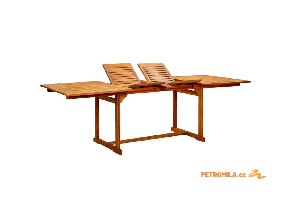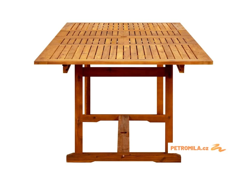 Tento zahradní stůl je vyrobený z masivního akáciového dřeva, tropického tvrdého dřeva, které je odolné vůči povětrnostním vlivům a má dlouhou životnost. Jeho povrch je napuštěný olejem, takže se snadno čistí vlhkým hadříkem. Tento zahradní stůl je konstruován tak, aby se dal prodloužit, když je třeba víc místa.