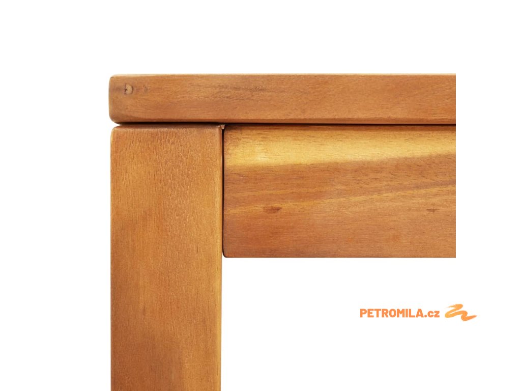 - Masivní akáciové dřevo: Zahradní stůl je vyrobený z masivního akáciového dřeva. Masivní akáciové dřevo je nádherný přírodní materiál. Vzhledem ke krásné kresbě akáciového dřeva je každý kus nábytku jedinečný a lehce se liší od ostatních.