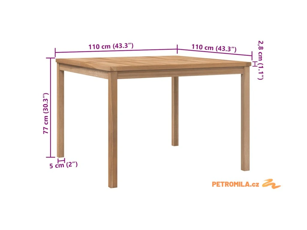 Zahradní jídelní stůl 110 x 110 x 77 cm masivní teakové dřevo