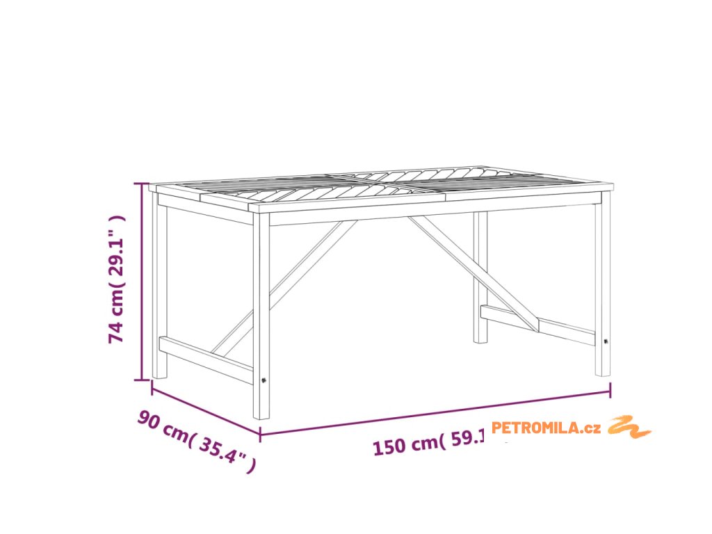 Zahradní jídelní stůl 150 x 90 x 74 cm masivní akáciové dřevo