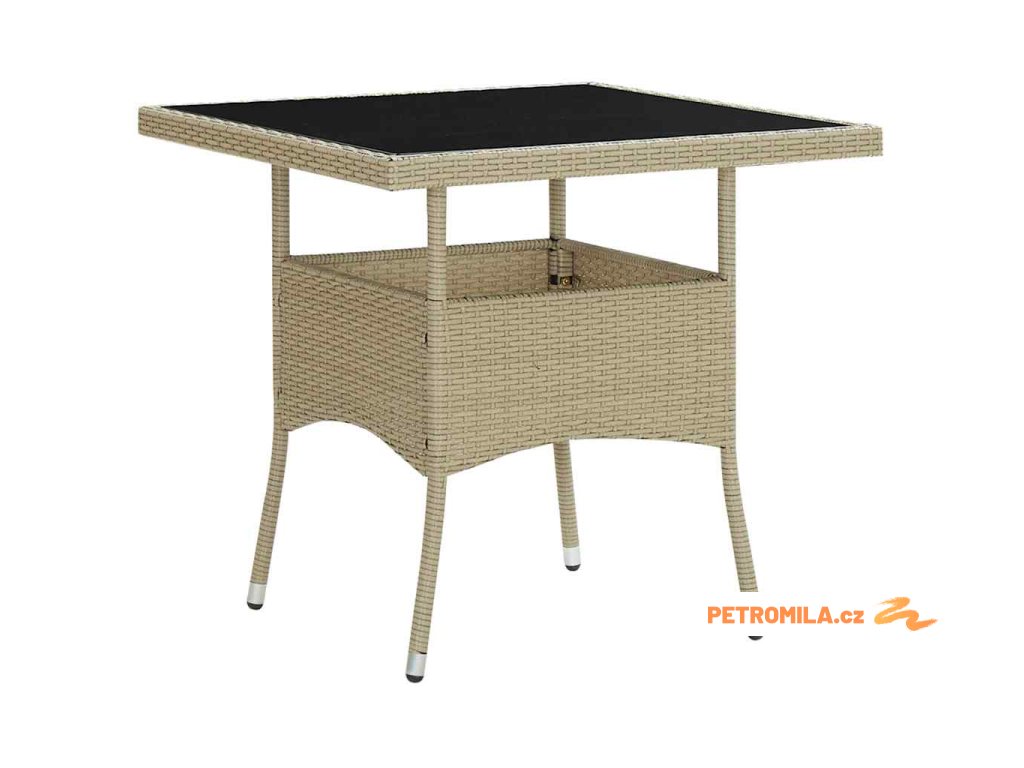 Zahradní jídelní stůl béžový polyratan a sklo