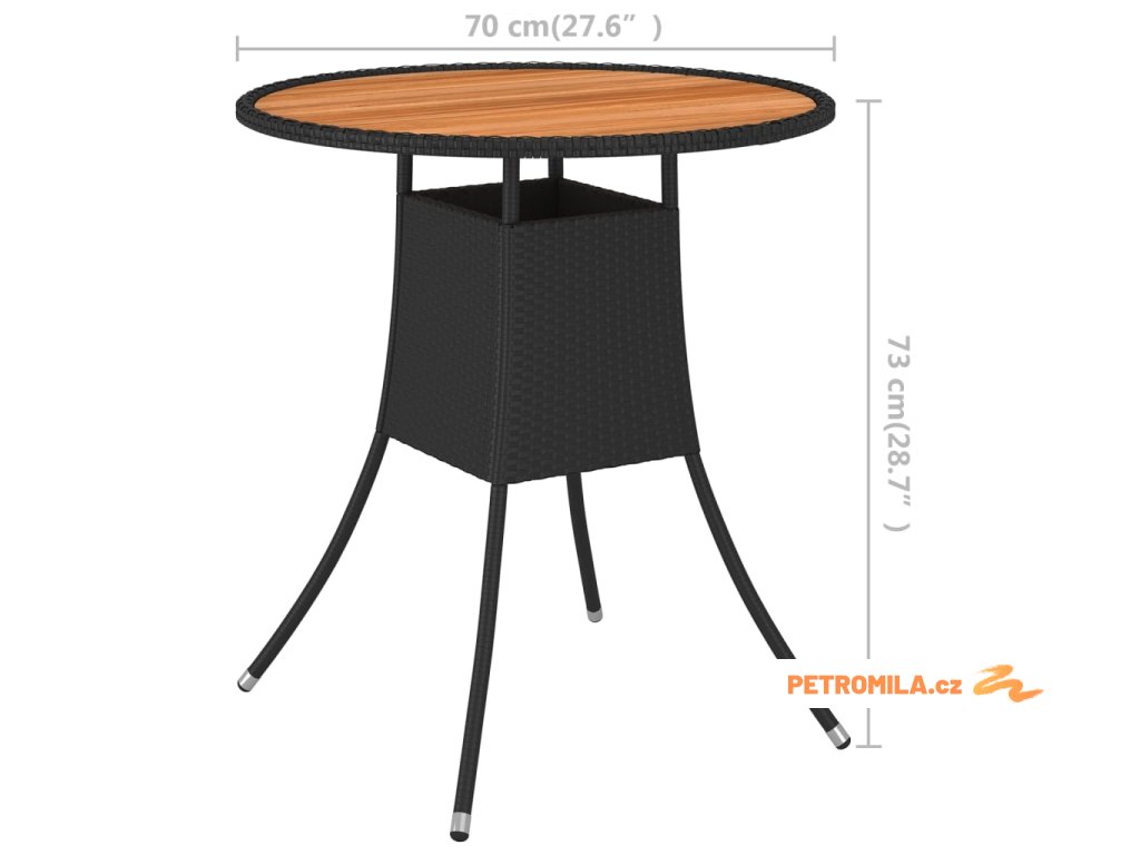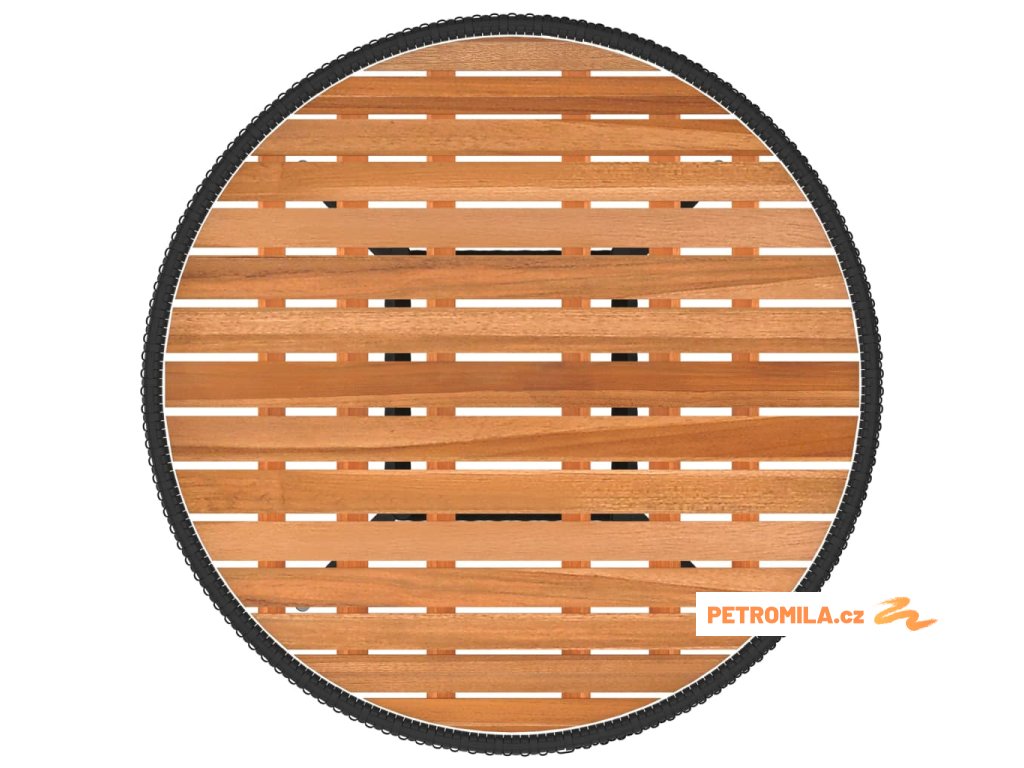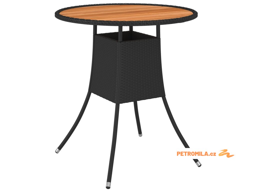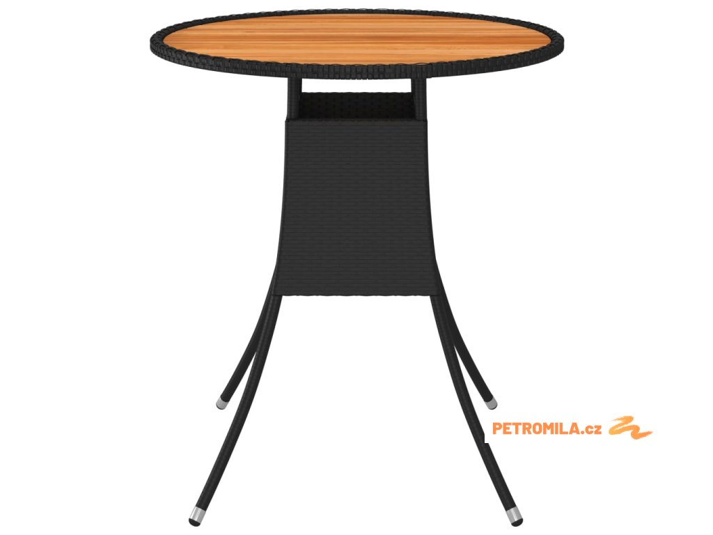Zahradní jídelní stůl černý Ø 70 cm polyratan a masivní akácie