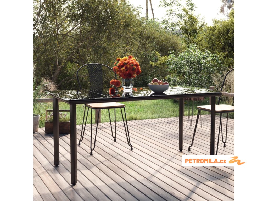 Zahradní jídelní stůl černý 160x80x74 cm ocel a tvrzené sklo