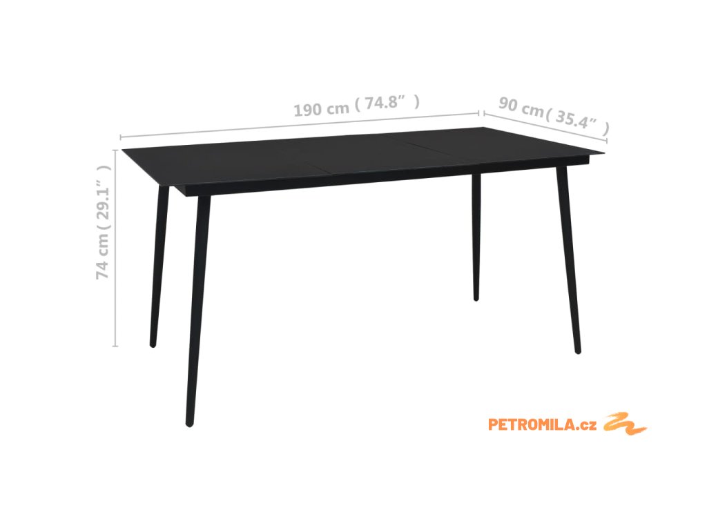 Zahradní jídelní stůl černý 190 x 90 x 74 cm ocel a sklo