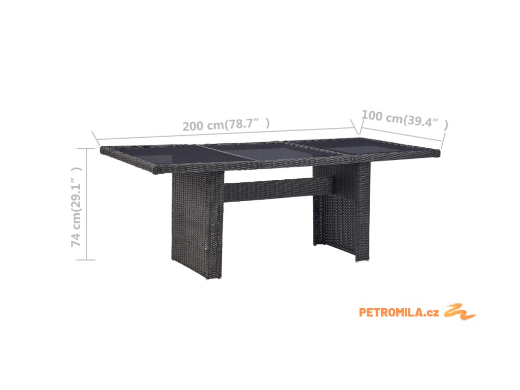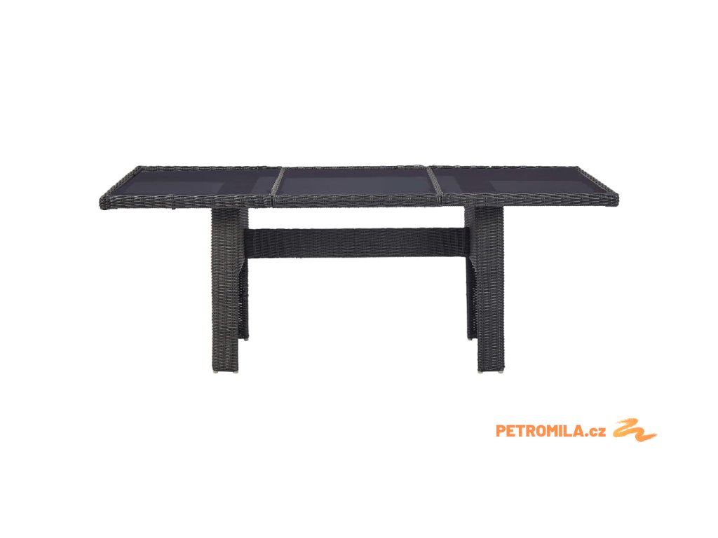 Zahradní jídelní stůl černý 200 x 100 x 74 cm sklo a polyratan