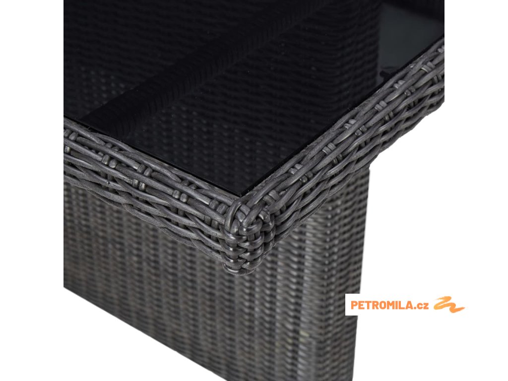 - Materiál: PE ratan, sklo, práškově lakovaná ocel