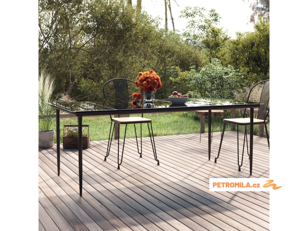 Zahradní jídelní stůl černý 200x100x74 cm ocel a tvrzené sklo
