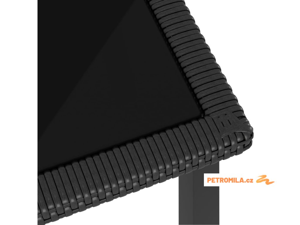 - Materiál: PE ratan, práškově lakovaná ocel, tvrzené sklo