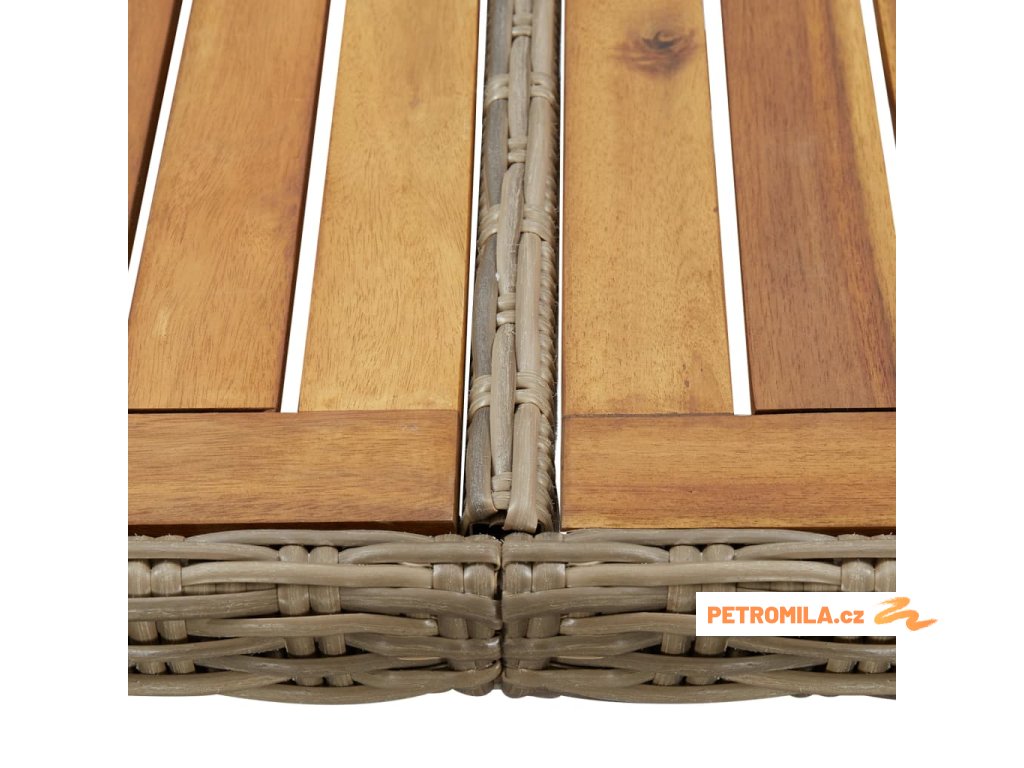 - Materiál: PE ratan, masivní akáciové dřevo, práškově lakovaná ocel