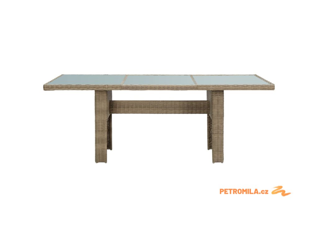 Zahradní stůl je vyrobený z PE ratanu, a proto je odolný vůči povětrnostním vlivům a má dlouhou životnost. Ocelový rám a skleněná deska stolu jsou robustní a stabilní. Stůl má také lehkou konstrukci a snadno se přesouvá.