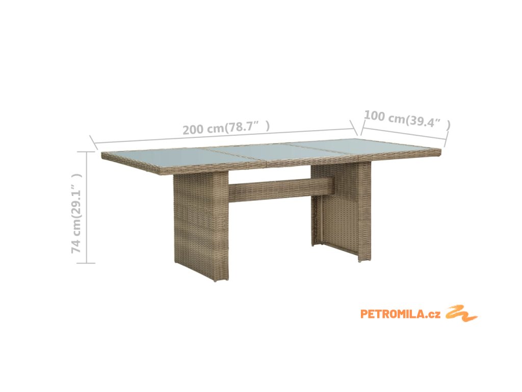 Zahradní jídelní stůl hnědý 200 x 100 x 74 cm sklo a polyratan