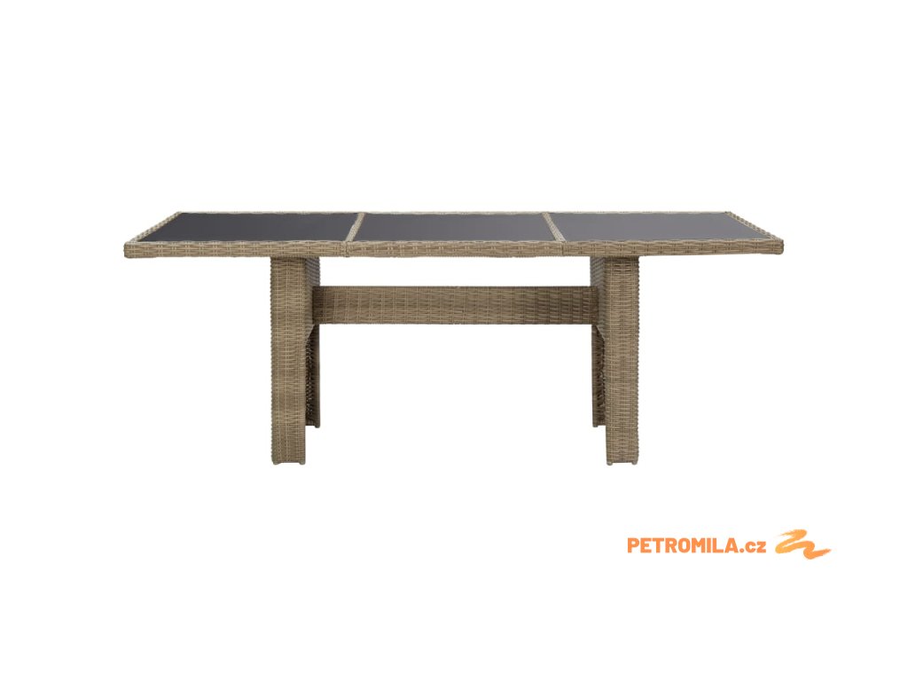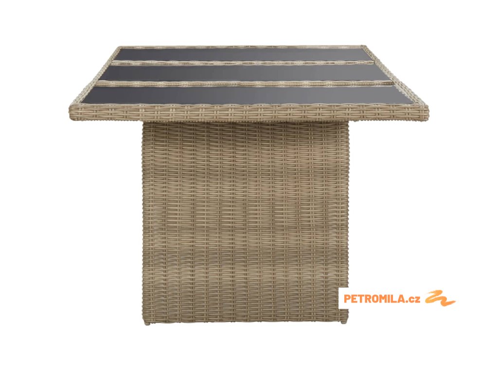 Zahradní stůl je vyrobený z PE ratanu, a proto je odolný vůči povětrnostním vlivům a má dlouhou životnost. Ocelový rám a skleněná deska stolu jsou robustní a stabilní. Stůl má také lehkou konstrukci a snadno se přesouvá.