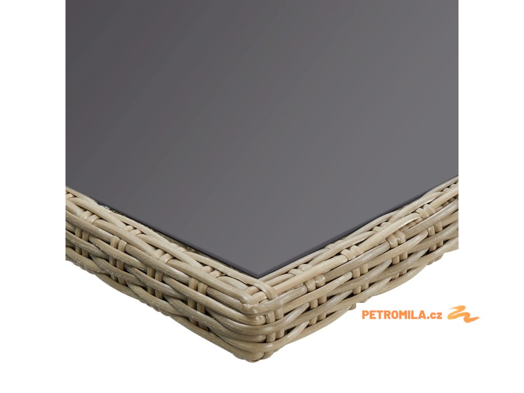 - Materiál: PE ratan, sklo, práškově lakovaná ocel