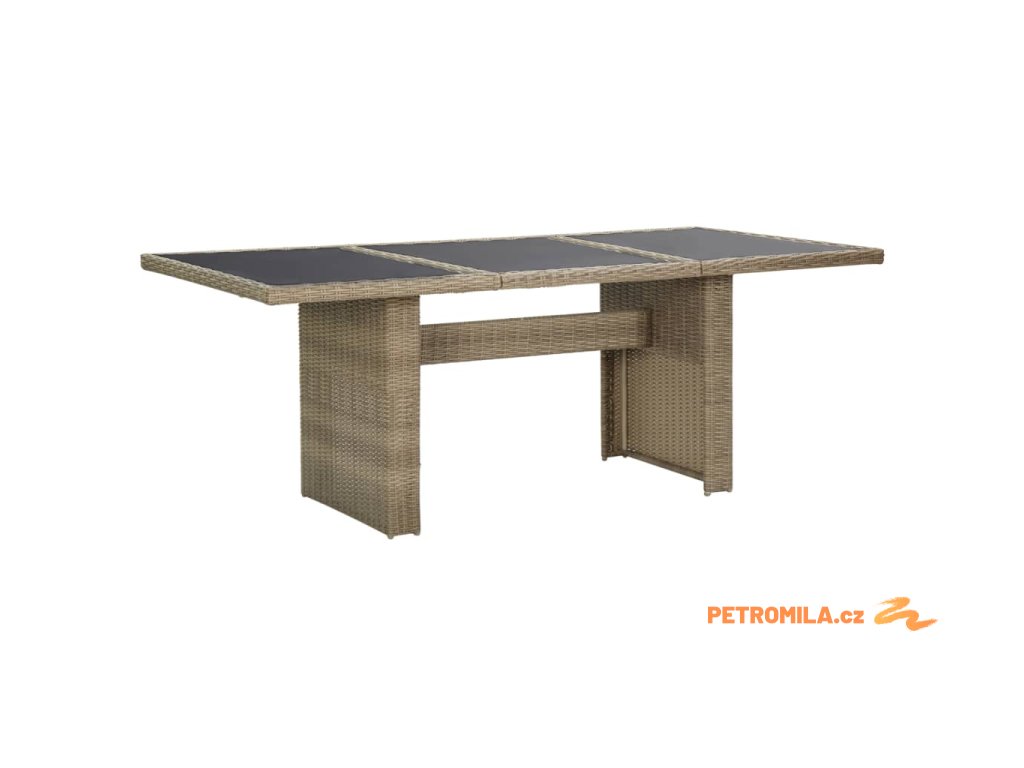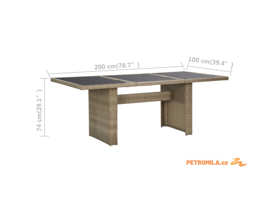 Zahradní jídelní stůl hnědý 200 x 100 x 74 cm sklo a polyratan