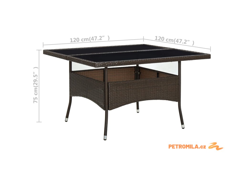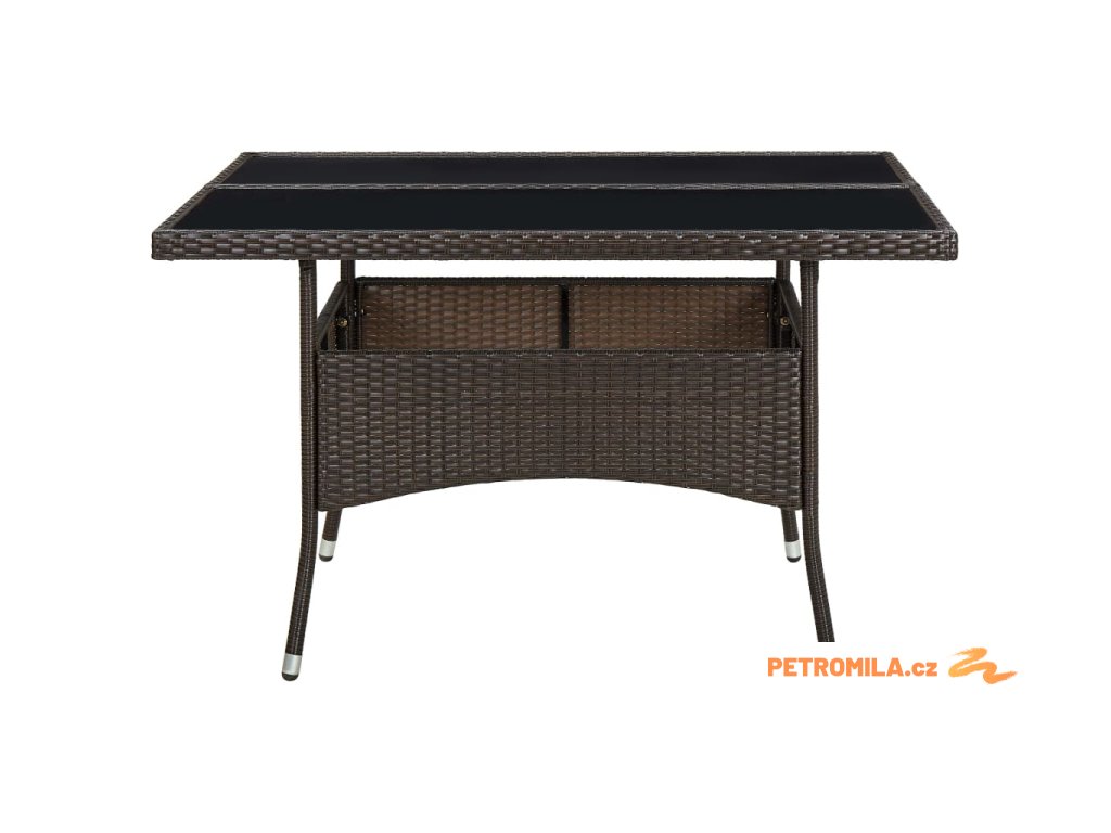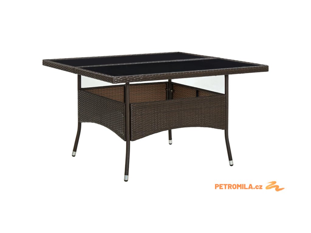 Zahradní jídelní stůl hnědý polyratan a sklo
