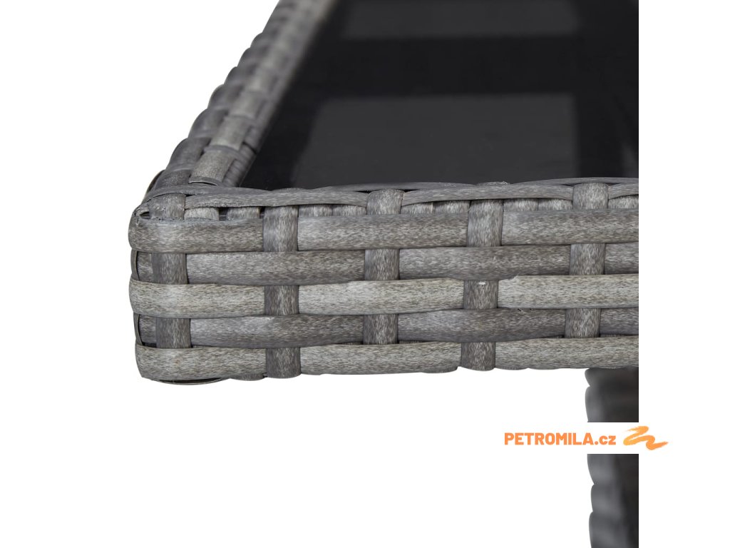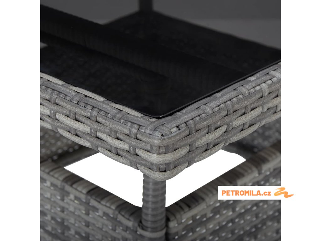 Vychutnejte si s naším jídelním stolem večeři pod hvězdami nebo prosluněný oběd na terase. Pohodlně se k němu usadí až 4 osoby. Stůl z polyratanu, zpevněném rámem z oceli s práškovým nástřikem, je odolný vůči UV záření i dalším klimatickým vlivům a zaručuje roky spokojeného používání ve venkovním prostředí. Stolní deska z vyztuženého tvrzeného skla je velmi pevná a snadno se udržuje a čistí. Lehká ratanová konstrukce usnadňuje přesouvání a přenášení stolu.