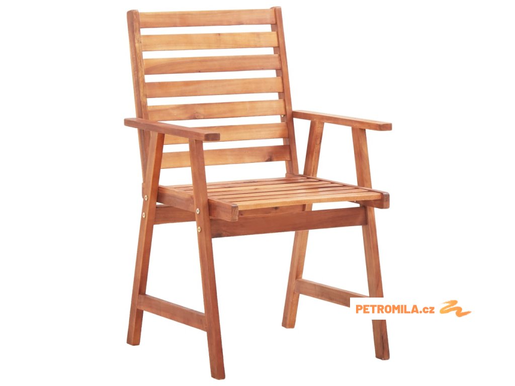 Zahradní židle jsou vyrobené z masivní akácie, tropického tvrdého dřeva, které je odolné vůči povětrnostním vlivům a vydrží vám sloužit po mnoho let. Olejem napuštěný povrch se snadno čistí vlhkým hadříkem. Laťkový design vnese do každého prostoru rustikální kouzlo. Pro ještě větší pohodlí obdržíte spolu s židlemi také podušky. Jsou vyrobené ze 100% polyesteru s voděodolnou povrchovou úpravou a každá z nich je opatřená dvěma páry šňůrek, kterými je můžete pevně přivázat k židli.
