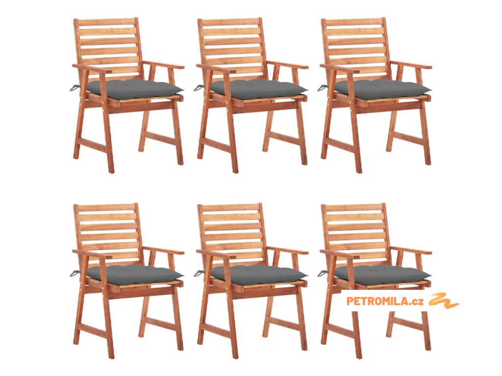 Zahradní jídelní židle 6 ks s poduškami masivní akáciové dřevo