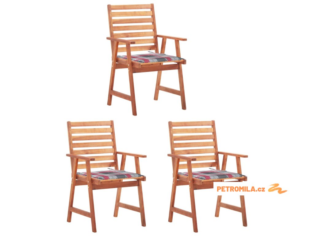 Zahradní jídelní židle s poduškami 3 ks masivní akáciové dřevo