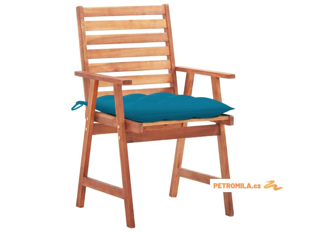 Tato moderní sada dřevěných jídelních židlí s poduškami dodá vaší zahradě, terase či dvorku nádech přírodního stylu. Představuje skvělou volbu pro stolování na čerstvém vzduchu.