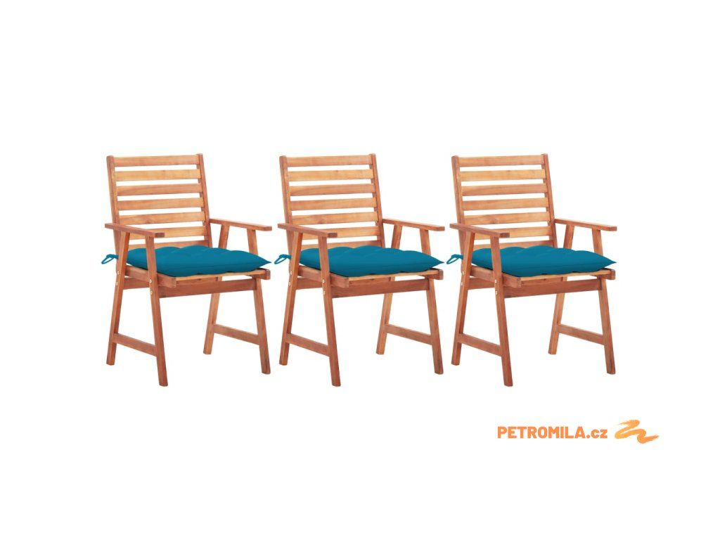 Zahradní jídelní židle s poduškami 3 ks masivní akáciové dřevo