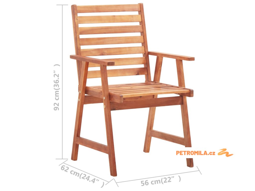 Zahradní židle jsou vyrobené z masivní akácie, tropického tvrdého dřeva, které je odolné vůči povětrnostním vlivům a vydrží vám sloužit po mnoho let. Olejem napuštěný povrch se snadno čistí vlhkým hadříkem. Laťkový design vnese do každého prostoru rustikální kouzlo. Pro ještě větší pohodlí obdržíte spolu s židlemi také podušky. Jsou vyrobené ze 100% polyesteru s voděodolnou povrchovou úpravou a každá z nich je opatřená dvěma páry šňůrek, kterými je můžete pevně přivázat k židli.