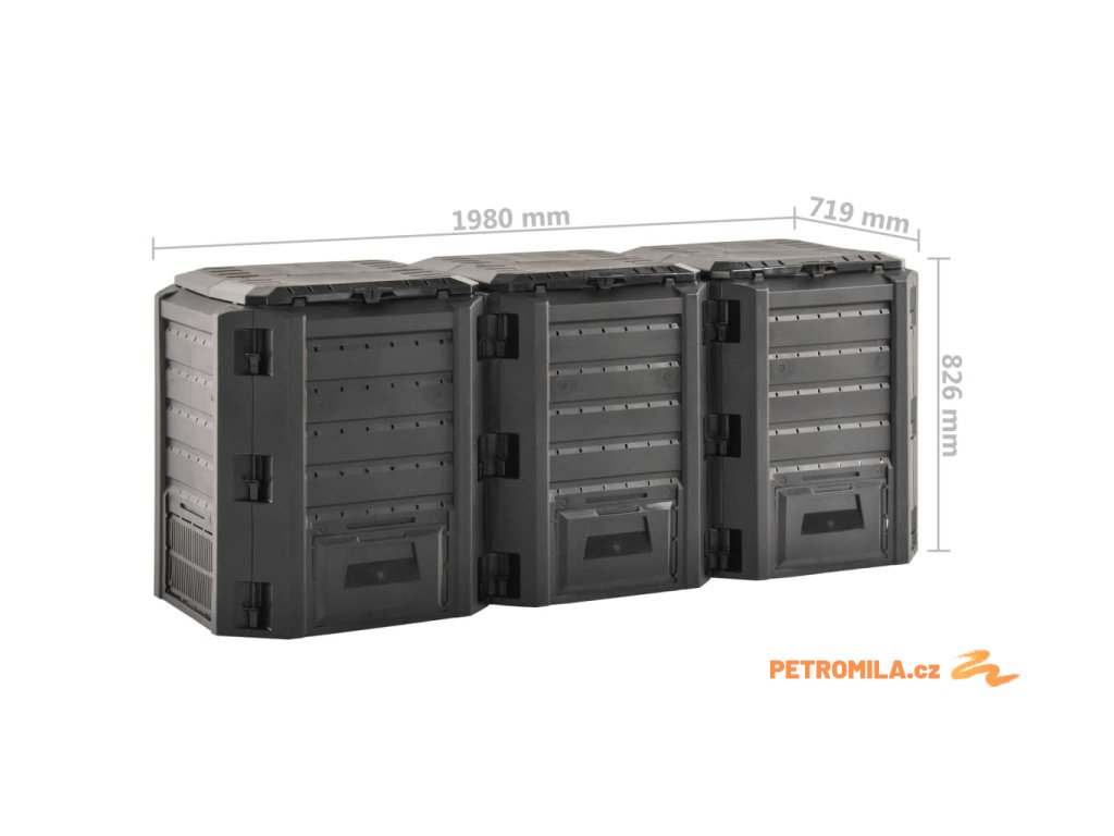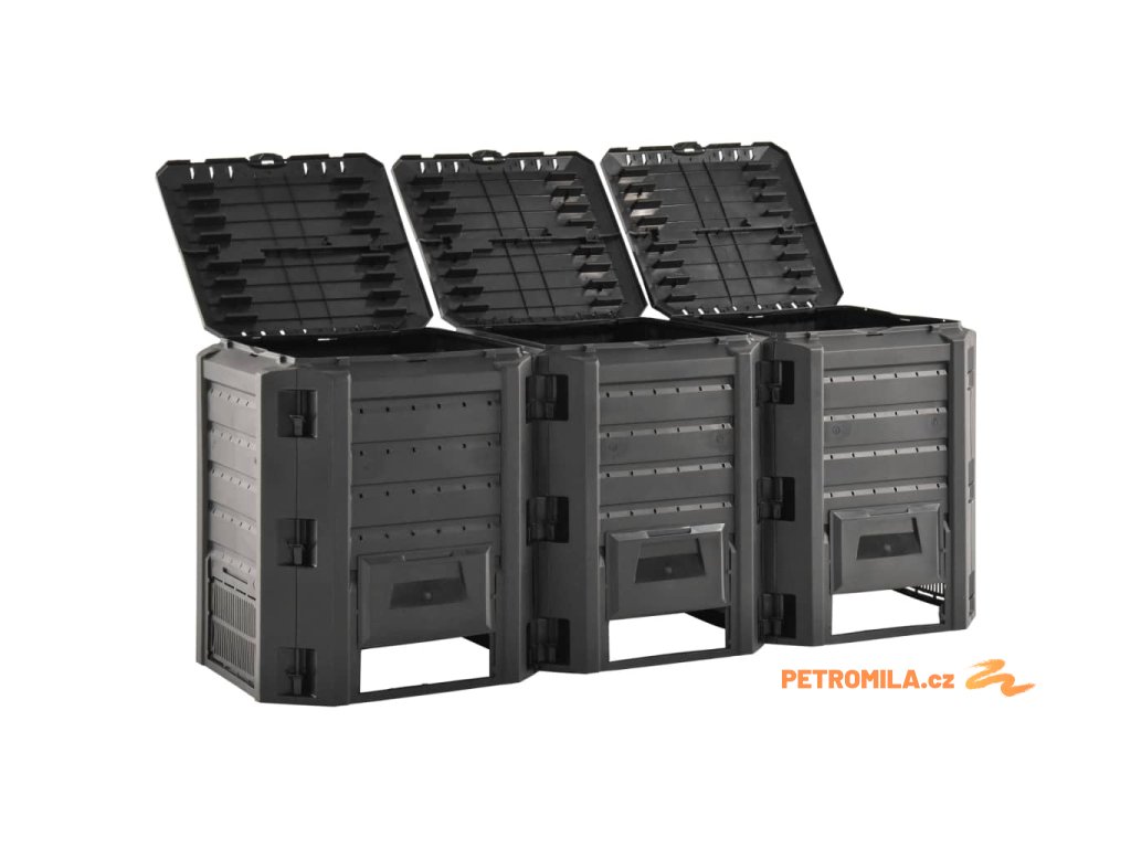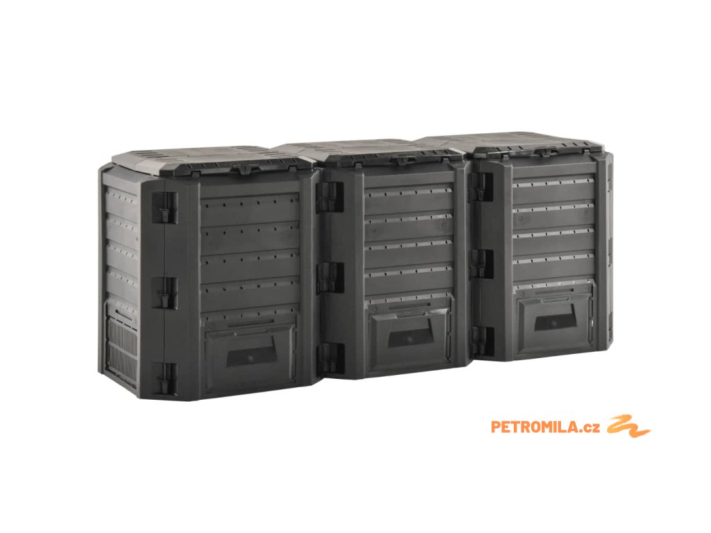 Vysoká teplota, která vzniká uvnitř kompostéru, podporuje rychlejší bakteriální rozklad a vytváří kvalitnější humus. Kontejner má kompaktní design, takže nezabírá příliš místa, ale zároveň nabízí mohutný vnitřní objem. Horní víko umožňuje snadné plnění shora, zatímco vyklápěcí dvířka ve spodní části naopak zajišťují jednoduché vytahování humusu. K sestavení kompostu nepotřebujete žádné další nástroje.