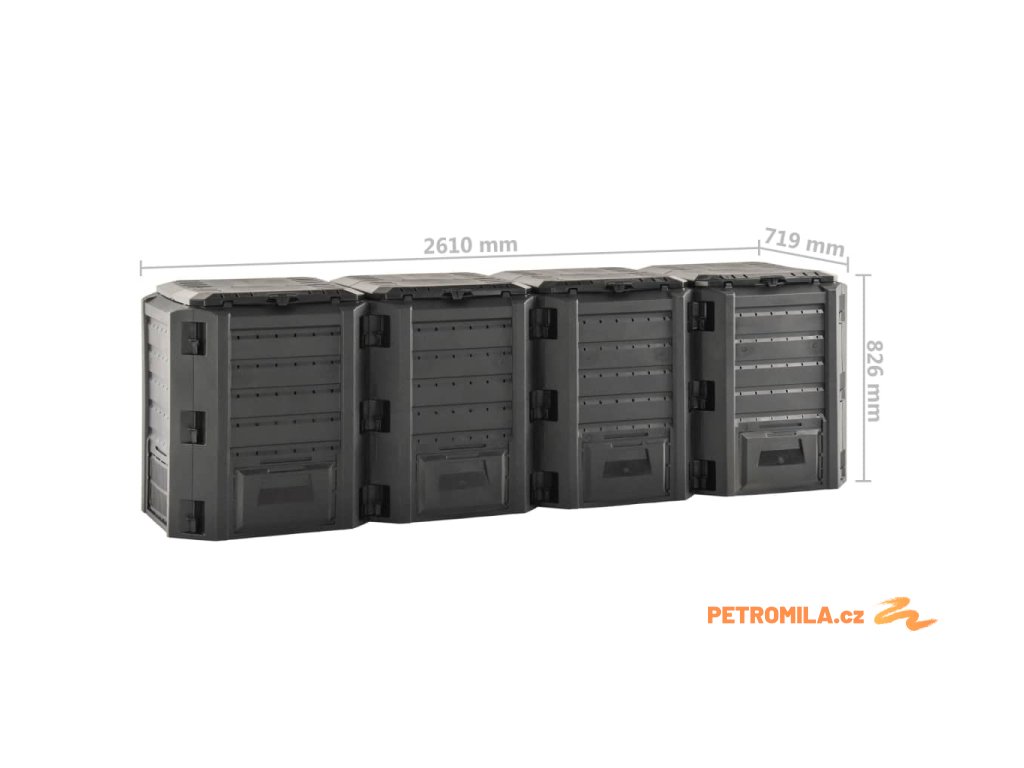 Vysoká teplota, která vzniká uvnitř kompostéru, podporuje rychlejší bakteriální rozklad a vytváří kvalitnější humus. Kontejner má kompaktní design, takže nezabírá příliš místa, ale zároveň nabízí mohutný vnitřní objem. Horní víko umožňuje snadné plnění shora, zatímco vyklápěcí dvířka ve spodní části naopak zajišťují jednoduché vytahování humusu. K sestavení kompostu nepotřebujete žádné další nástroje.