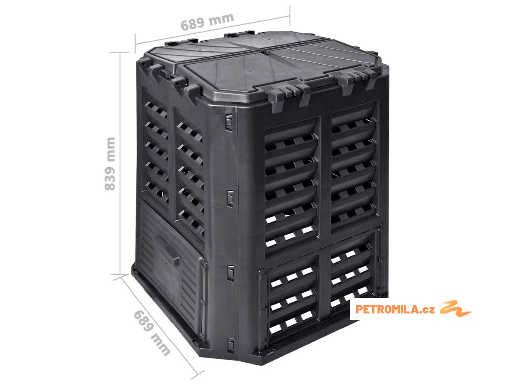 Vysoká teplota, která vzniká uvnitř kompostéru, urychluje bakteriální rozklad a vytváří lepší humus. Kontejner má kompaktní design, takže nezabírá příliš místa, ale zároveň nabízí mohutný vnitřní objem. Horní víka umožňují snadné plnění shora, zatímco vyklápěcí dvířka ve spodní části naopak zajišťují jednoduché vytahování humusu. Kapkový zavlažovací systém, otvor na visací zámek, pevné postranní západky, odolné panty vík, praktická rukojeť a velká posuvná dvířka s šikovnými úchytkami navíc přispívají k velmi pohodlnému používání.