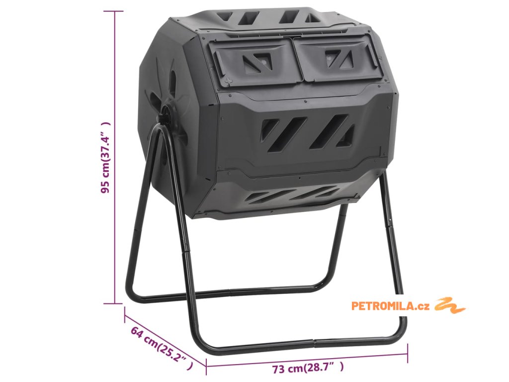 - Praktický design: Kompostér se dvěma oddělenými komorami je velmi praktický. Zatímco na jedné straně již dochází k rozkladu, na druhé straně lze doplňovat nový materiál.