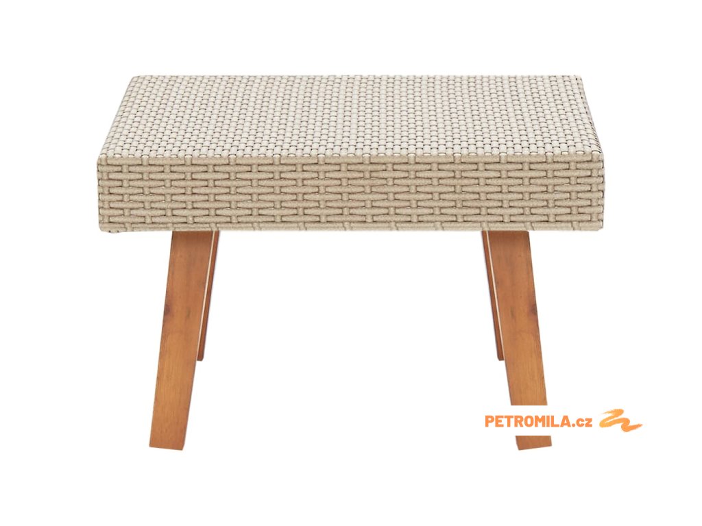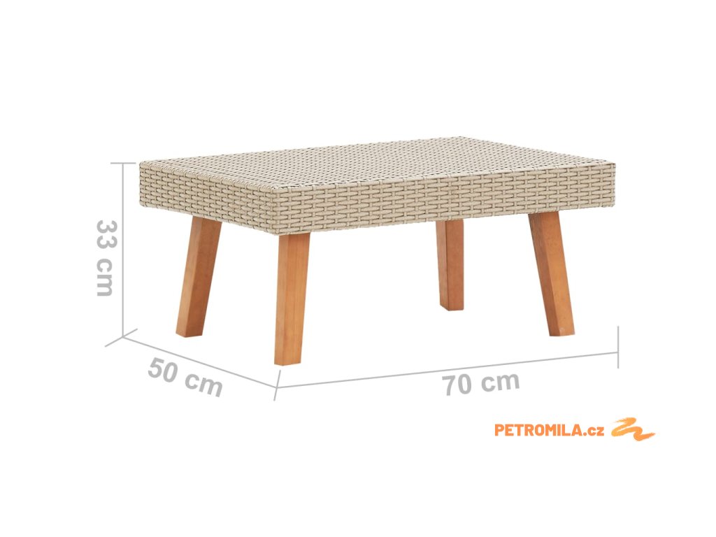 Tento konferenční stolek s dřevěnými nohami je ideální pro zdobení terasy, zahrady, bazénu nebo jiných venkovních prostor.